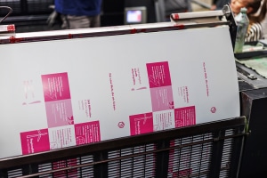 Um das Druckbild auf das Papier zu bringen, braucht es natürlich nicht nur die Druckmaschine. Denn irgendwie müssen die Motive schließlich in die Maschine kommen. Dieses Prozedere wird über den Einsatz von Druckplatten gelöst, über die das Druckmotiv mittels Farbe über ein Gummituch auf das Papier gedruckt wird. Und diese Druckplatten werden über einen Plattenbelichter mit dem jeweiligen Druckbild versehen, die vom PC an den Belichter geschickt werden.